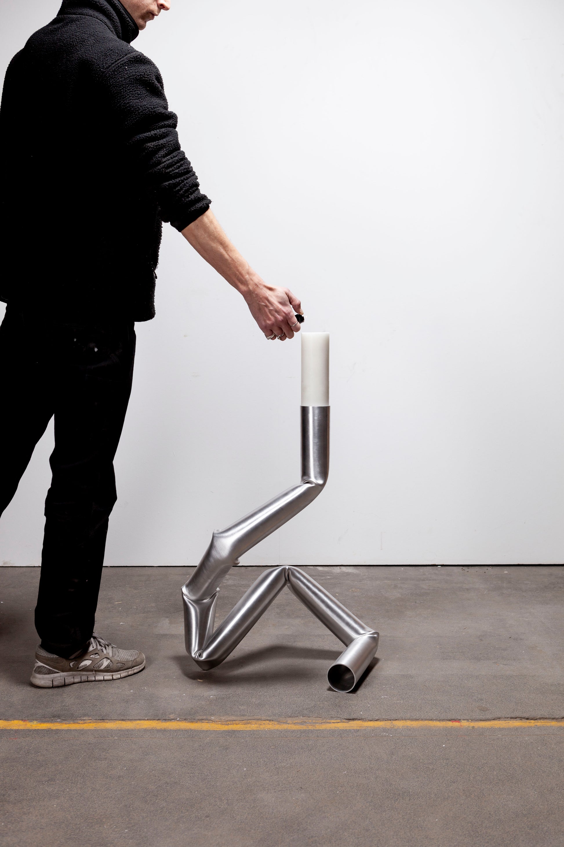 Our Primi collection is a collection of hand-made, locally produced and unique design products and it is the result of a material-driven research into the world of aluminium. From history of use through its position in a sustainable context and philosophical qualities this research has inspired ways of handling and liberating aluminium with nothing but four hands and two curious minds. The formular is to break with conventions in order to create interior objects that insist on being seen and being discussed.