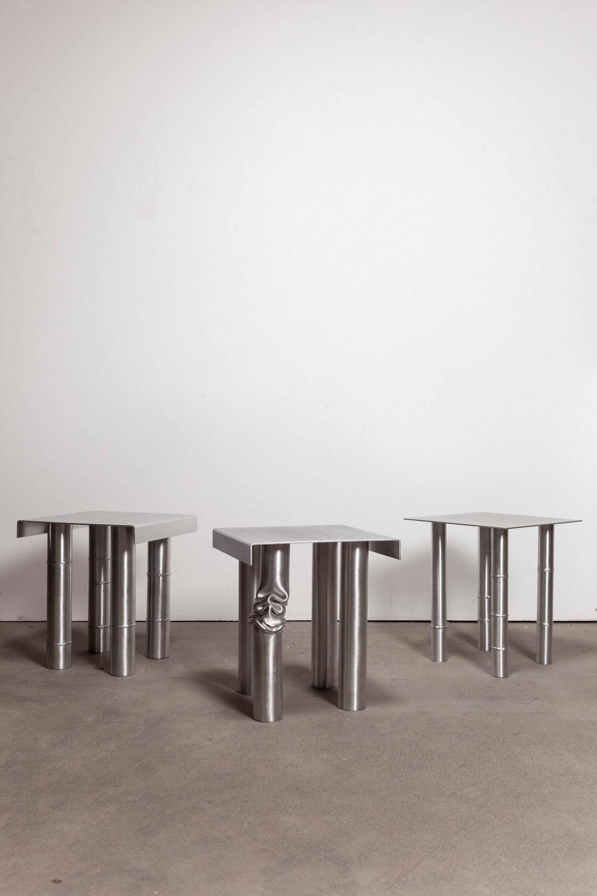 The POC-25 collection is the result of our constant process of trying to utilize the leftover material from our aluminium production. The series consists of three one-off stools with legs made from our scrap aluminium tubes – either welded together or pressed under high pressure.